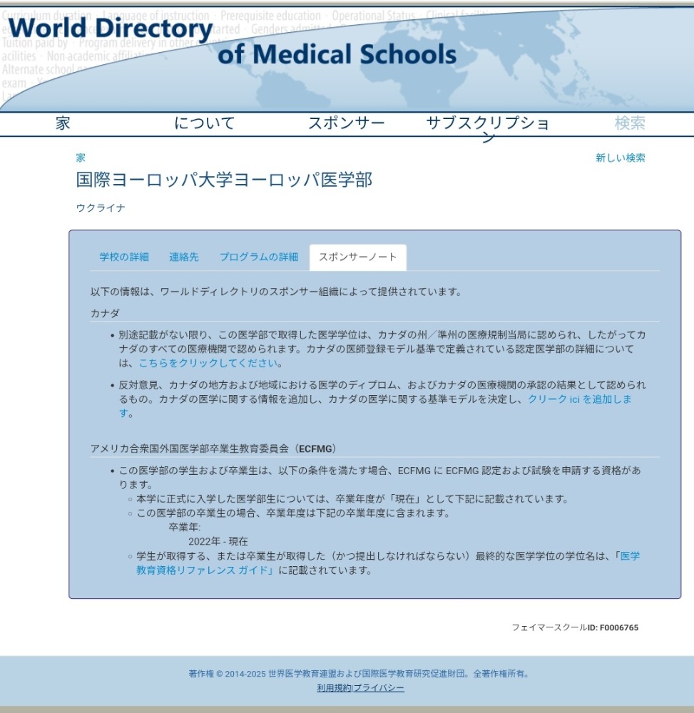 ●世界医学部ディレクトリ(WDOMS)掲載